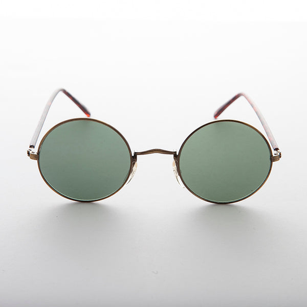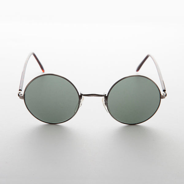 Unique round sunglasses with wrapped tube temples. A great twist on such a classic style. New old stock 1990s. Never worn. Great condition. UV protection.