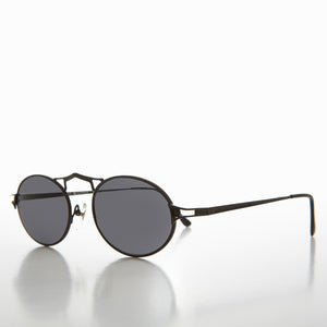 This interesting 90s sunglass features an oval shaped lens with an elegant bridge style. This frame is optical quality so go ahead and put your prescription in them. New old stock. Never worn. Great condition. UV protection.