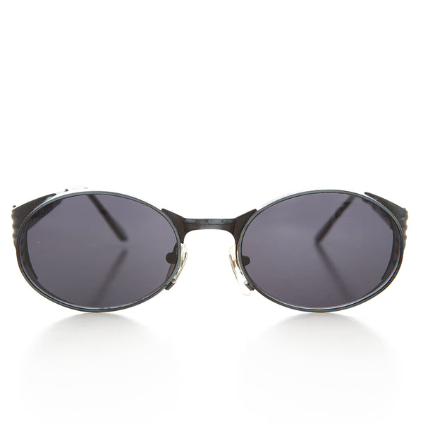 This full metal armor style has vented side shields welded into the frame and temples for a great industrial look. Made with quality heavy duty durable metal.