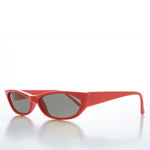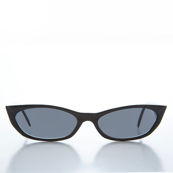 These slim edgy sunglasses feature a rectangular cat eye shaped frame with pointy tips.