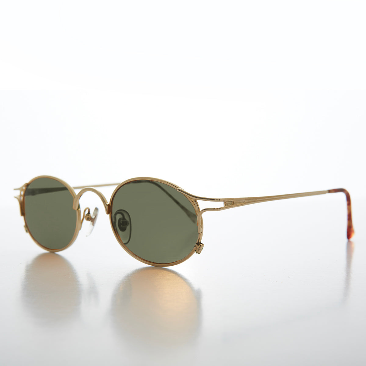 This 90s sunglass features a stylish and sophisticated frame with oval lens. Prescription friendly frame. New old stock. Never worn. Great condition. UV protection.