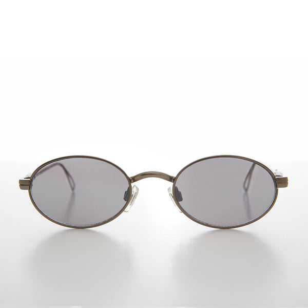 Beautiful, oval, optical quality sunglass that features a strikingly unique, full metal temple design. This perfectly shaped oval frame will compliment most faces.