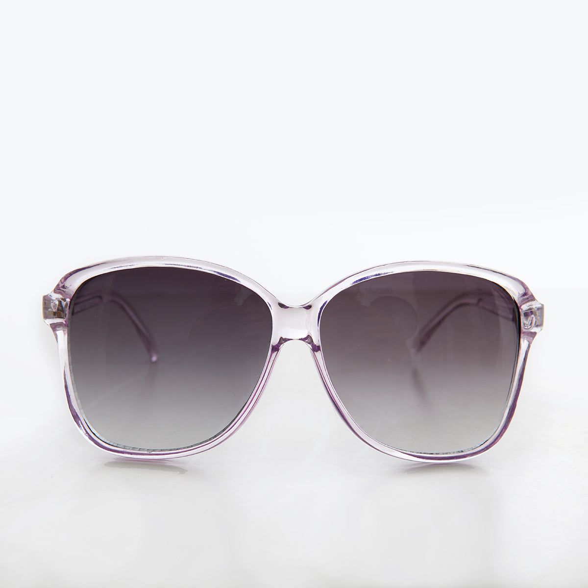 These face flattering oversized women's sunglasses feature a transparent butterfly silhouette frame with just the perfect hint of color. New old stock. Never worn. Great condition. UV protection.